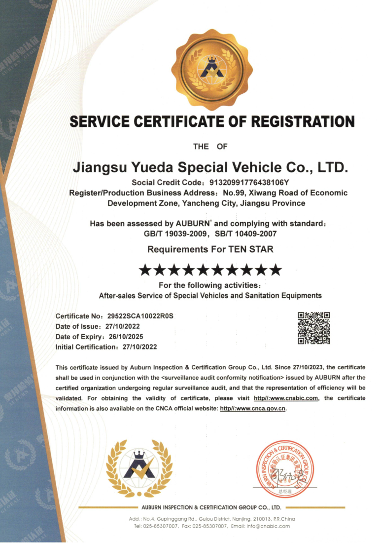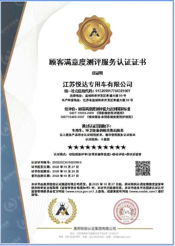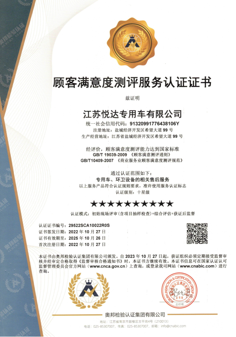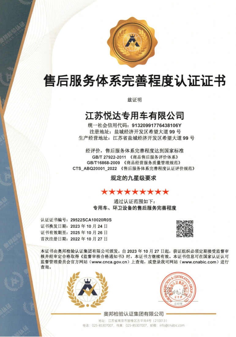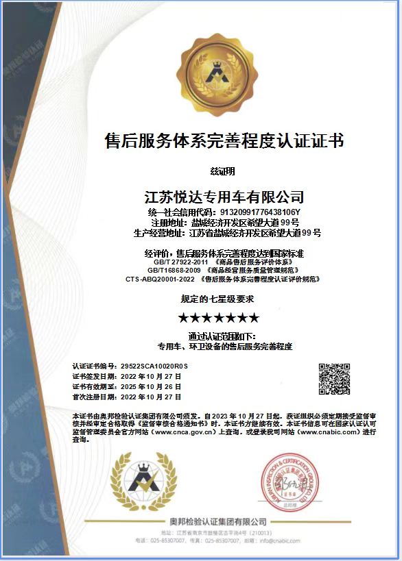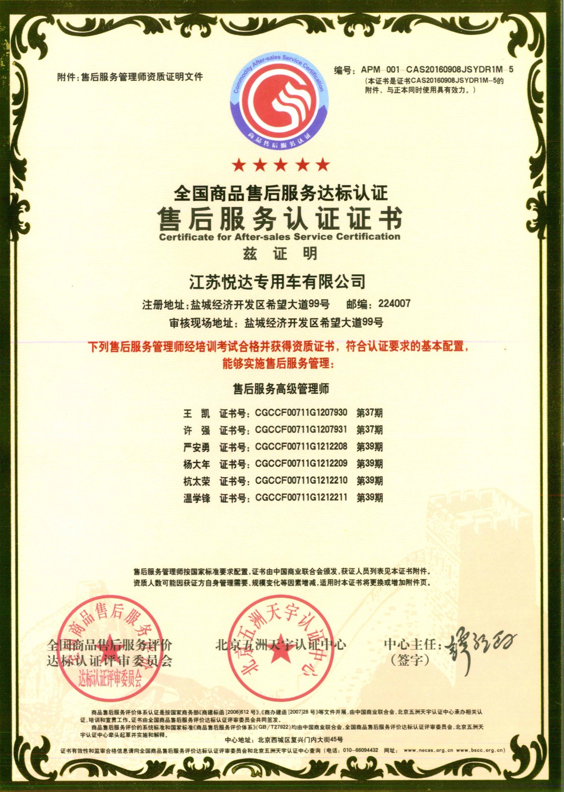 悅達(dá)專用車售后服務(wù)認(rèn)證