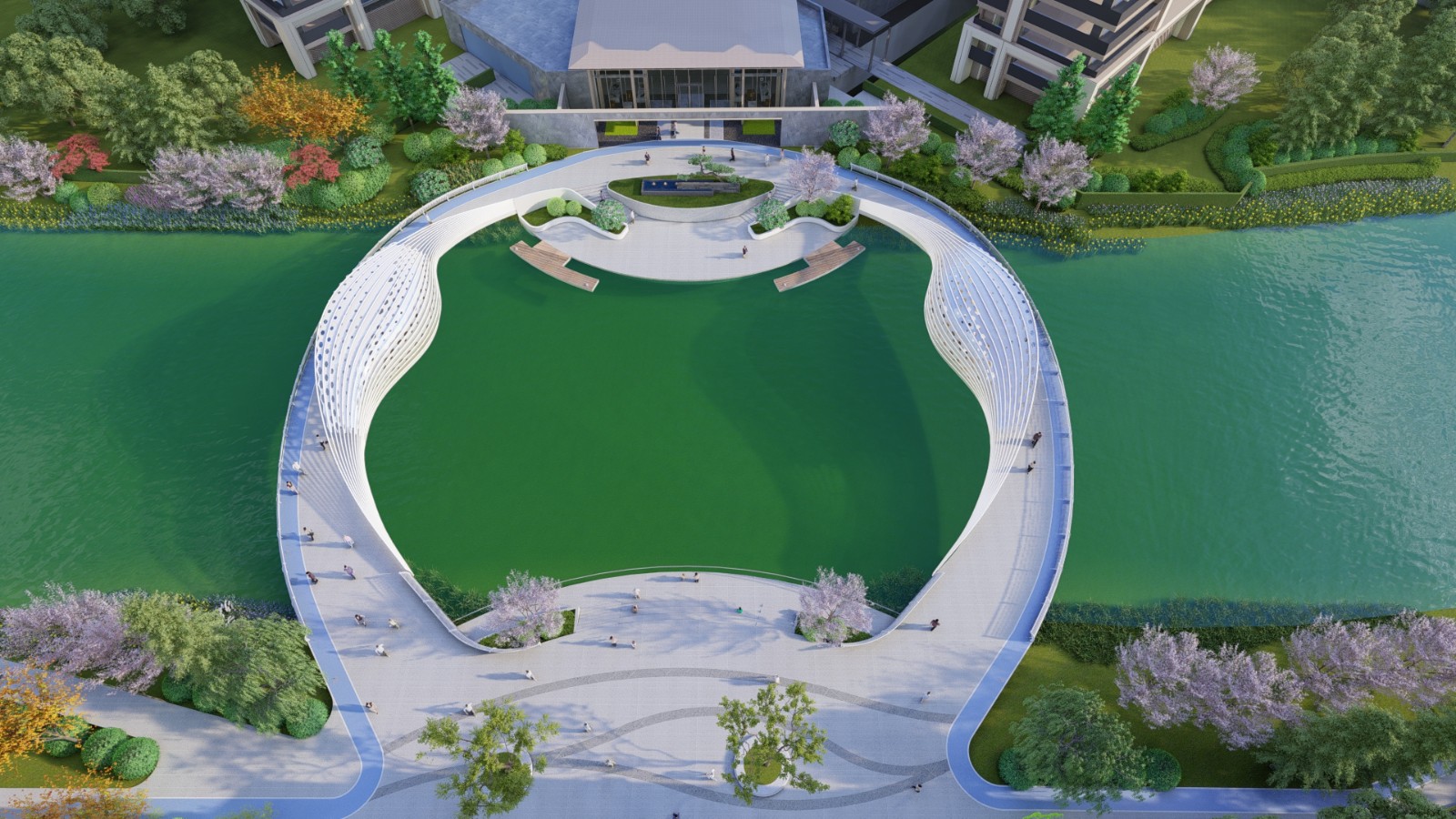 悅達(dá)·海玥府秉承品質(zhì)生活運(yùn)營家的發(fā)展理念,利用1公里長的地龍河黃金河岸線,形成天然的河灣半島地貌。整個(gè)項(xiàng)目采用現(xiàn)代中式風(fēng)格建筑造型,融入西式生活流線理念,營造空間豐富的花園體系,保證了每戶的通風(fēng)、采光以及景觀效果。同時(shí)將多景的園林表現(xiàn)手法,巧妙運(yùn)用到住宅園林景觀設(shè)計(jì)之中,營造一種恢弘大氣,尊貴感和私密性完美融合的現(xiàn)代東方森系風(fēng)格園林。