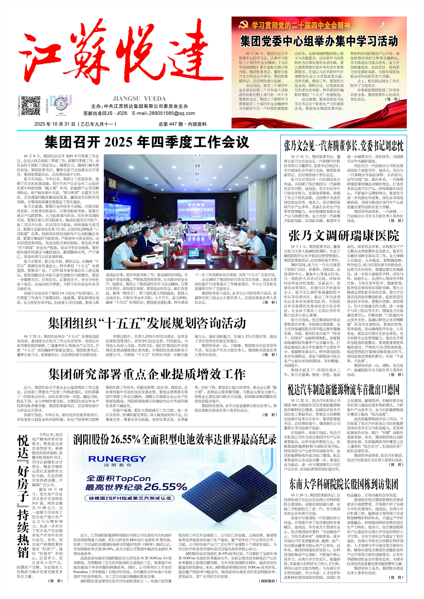 • ·  潤陽股份26.55%全面積N型電池效率登頂 2025-10-31