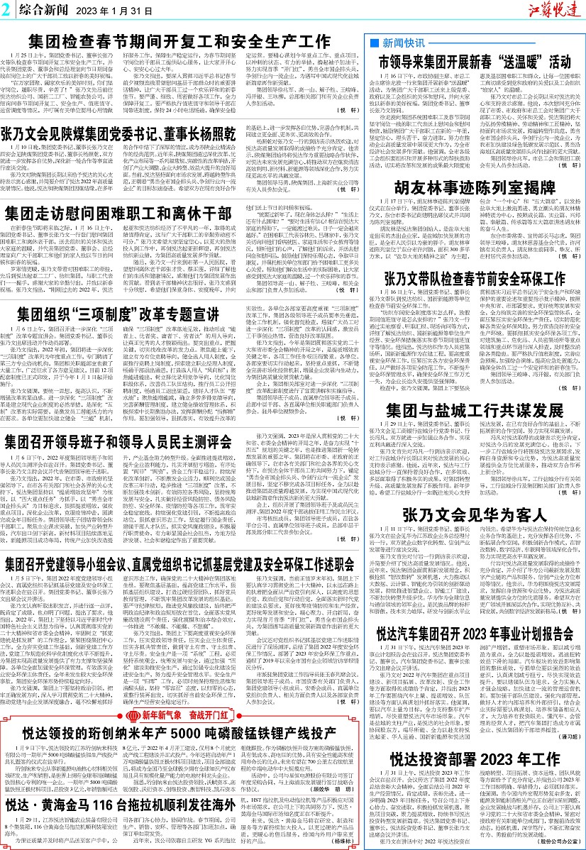 2月17日(農(nóng)歷大年初一)上午,集團(tuán)黨委書(shū)記、董事長(zhǎng)張乃文看望慰問(wèn)部分在鹽企業(yè)一線員工,視頻連線海內(nèi)外部分所屬企業(yè)干部職工,代表集團(tuán)黨委、董事會(huì)、總經(jīng)理室向春節(jié)期間堅(jiān)守崗位的勞動(dòng)者致以節(jié)日問(wèn)候和新春祝福。張乃文首先來(lái)到悅達(dá)仁逸康養(yǎng)中心,與入住老人和一線工作人員親切交談,并送上節(jié)日慰問(wèn)品。他詳細(xì)詢問(wèn)了節(jié)日期間安全管理、服務(wù)保障和老人生活照料等情況,對(duì)大家堅(jiān)守服務(wù)崗位的奉獻(xiàn)精神給予高度評(píng)價(jià)。他強(qiáng)調(diào),要用心用情做好康養(yǎng)服務(wù),不斷提升服務(wù)質(zhì)量和專(zhuān)業(yè)水平,努力打造讓老人安心、子女放心、社會(huì)滿意的康 ...