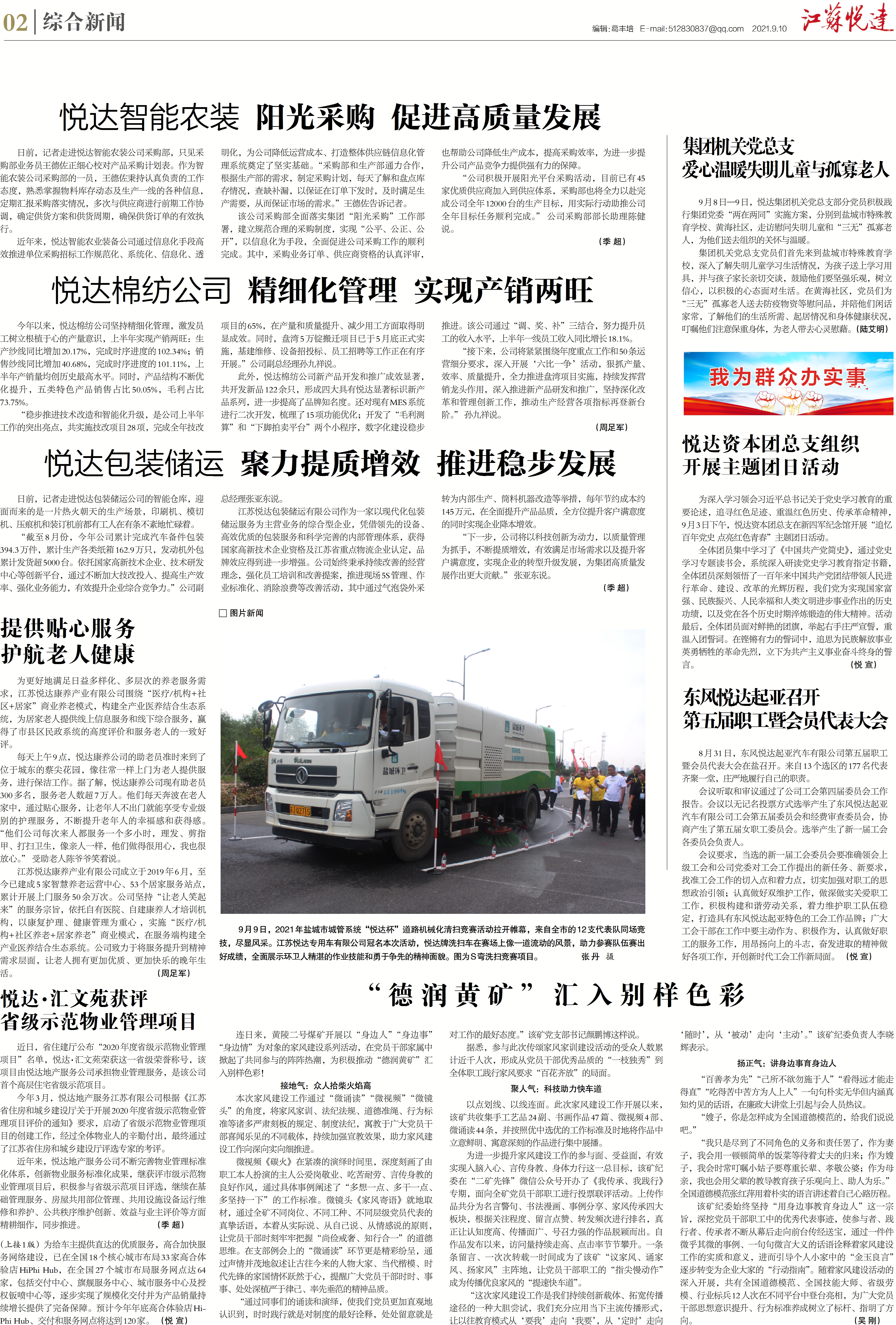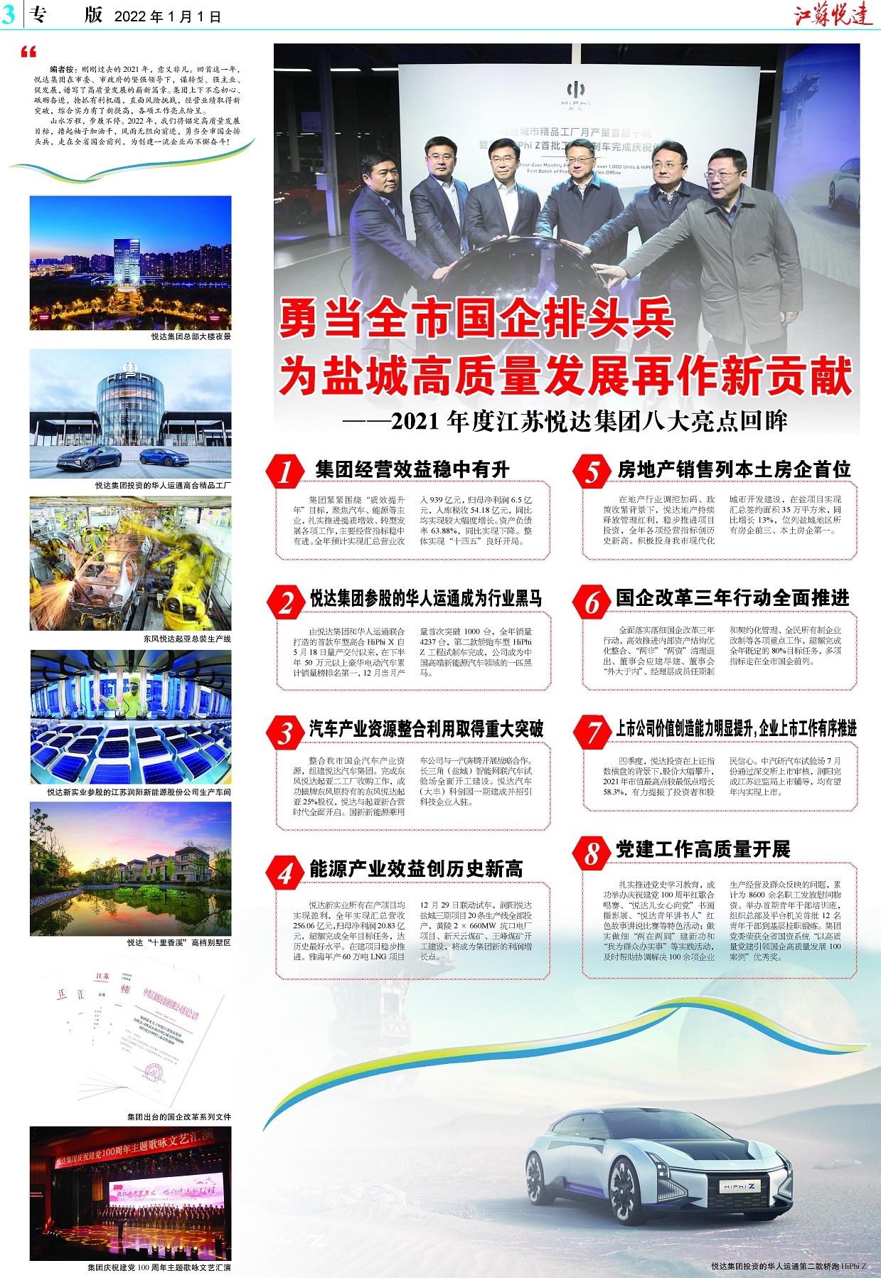 江蘇悅達(dá)集團(tuán)有限公司創(chuàng)立于1979年,創(chuàng)業(yè)40多年來,始終堅(jiān)持服務(wù)鹽城經(jīng)濟(jì)社會發(fā)展不動搖,始終堅(jiān)守實(shí)體經(jīng)濟(jì),成為全省重點(diǎn)國有骨干企業(yè)。榮獲“全國先進(jìn)基層黨組織”“中華慈善獎”“為改革開放作出突出貢獻(xiàn)的先進(jìn)集體”等榮譽(yù)稱號。